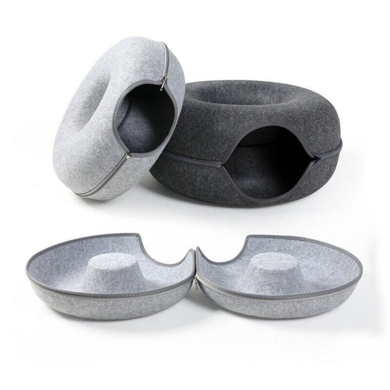 - 1x Tunnel Cave Bed Felt Sleeping Donut Cat House