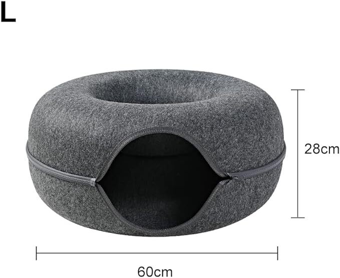 Elevate your feline friend's comfort and playtime with our Tunnel Cave Bed Felt Sleeping Donut Cat House. Crafted from scratch-resistant felt material, this cat tunnel offers the perfect blend of relaxation and entertainment that your beloved pet deserves.